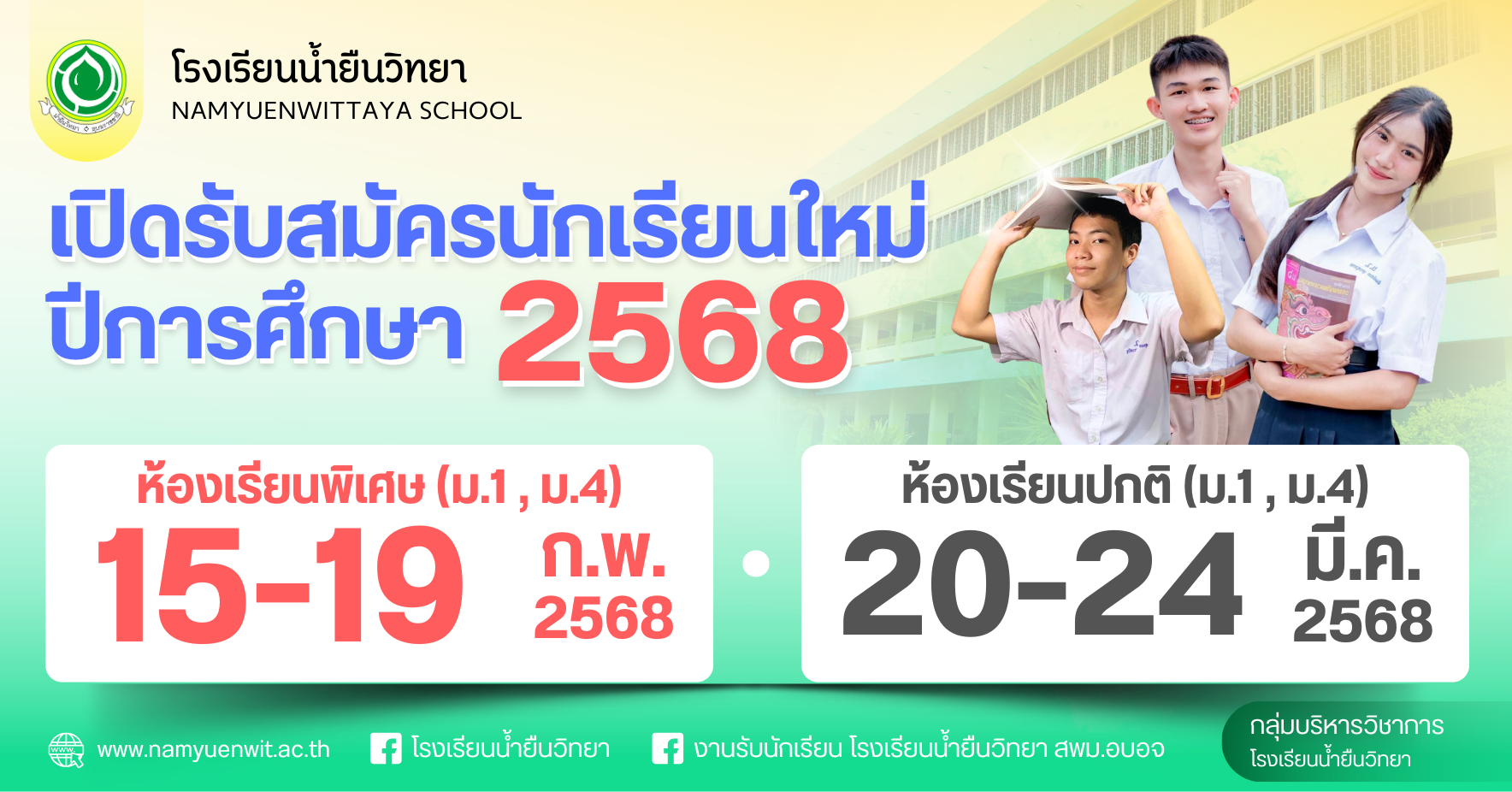 ชั้นมัธยมศึกษาปีที่ 1 สอบคัดเลือกวันที่ 29 มีนาคม 2568 เวลา 09.00 - 12.00 น.
